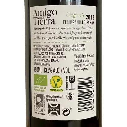 Amigo de la Tierra is a certified organic Spanish label focused on approachable, great-value wines. This 2022 Garnacha–Tempranillo is widely sold in Australia as an organic, vegan-friendly, weeknight-ready red.