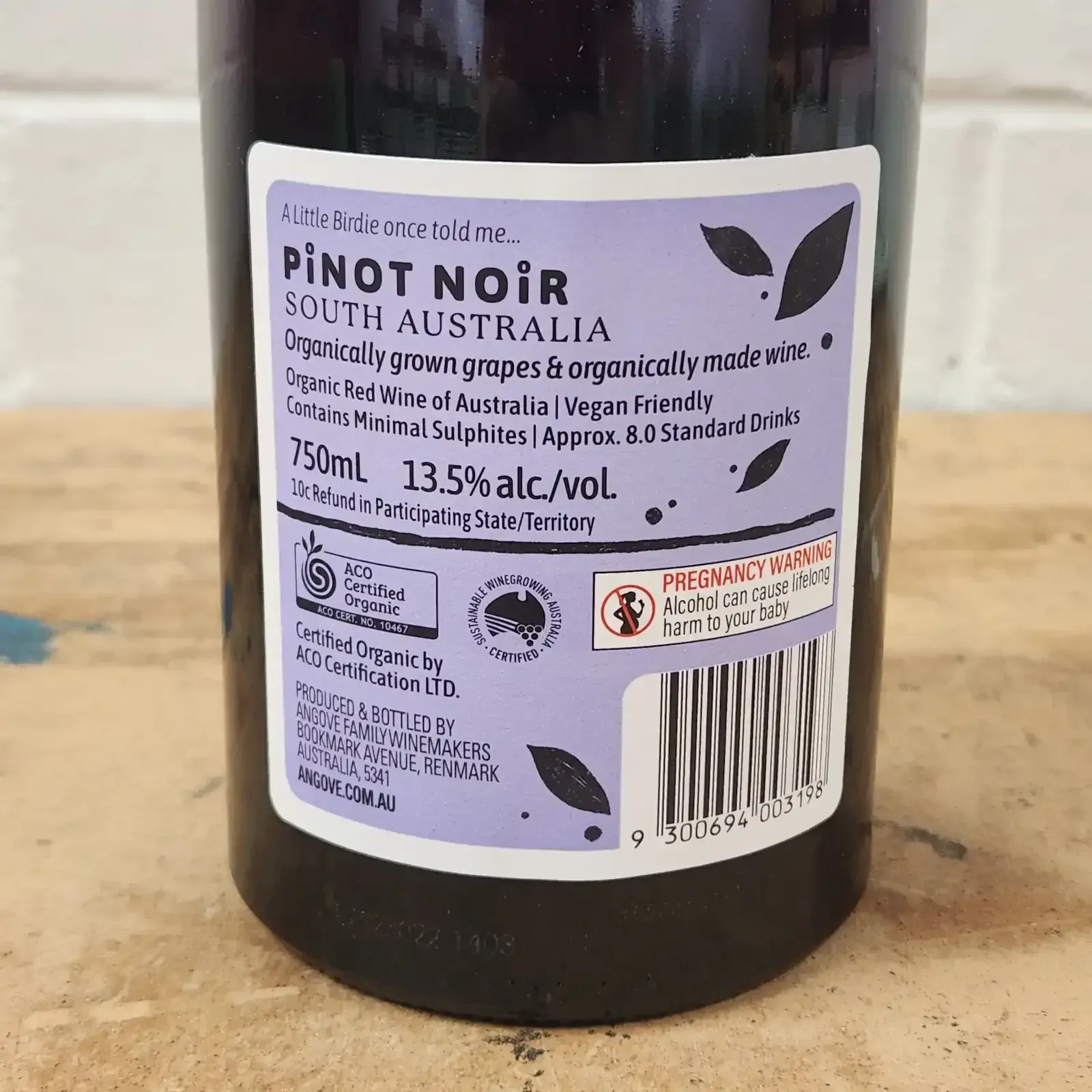 Is Angove Little Birdie Pinot Noir organic and vegan?