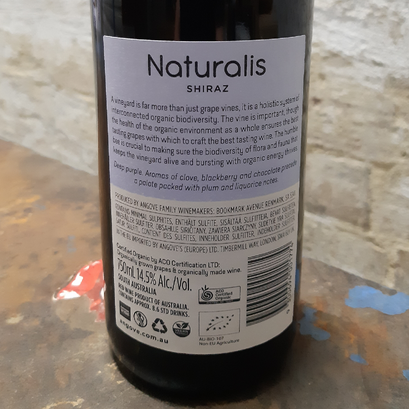 Tasting notes from the winery for Naturalis Organic Shiraz