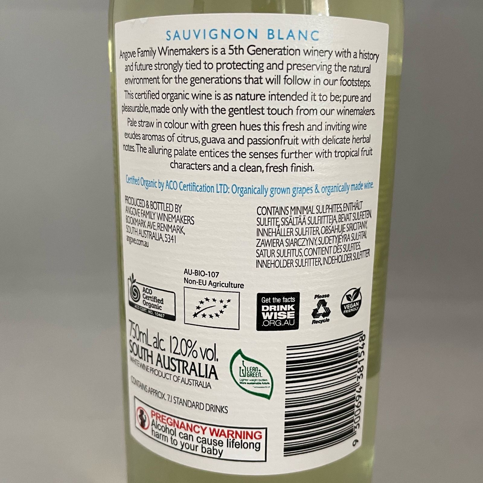 Tasting Notes for Angove Organic Sauvignon Blanc from the Winery