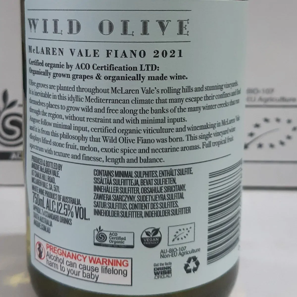 Angove Wild Olive Organic McLaren Vale Fiano 2024: Tasting Notes