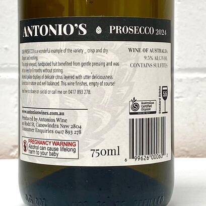 Tasting Notes for Antonio’s Organic Prosecco 2024 from the Winery