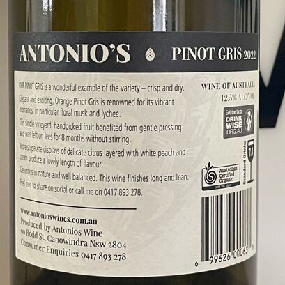 Antonio's Organic Pinot Gris 2022