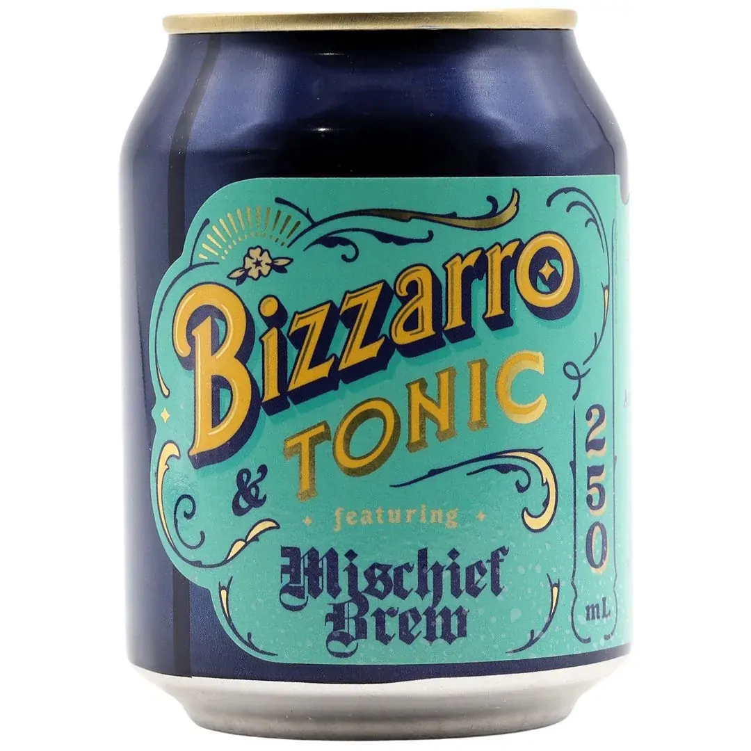 A cult collab in a can: Bizzarro blended with Mischief Brews Bengal Tonic. Grapefruit tang leads, followed by an earthy, herbaceous edge. All-natural, low-ABV and built for straight-from-the-can refreshment.