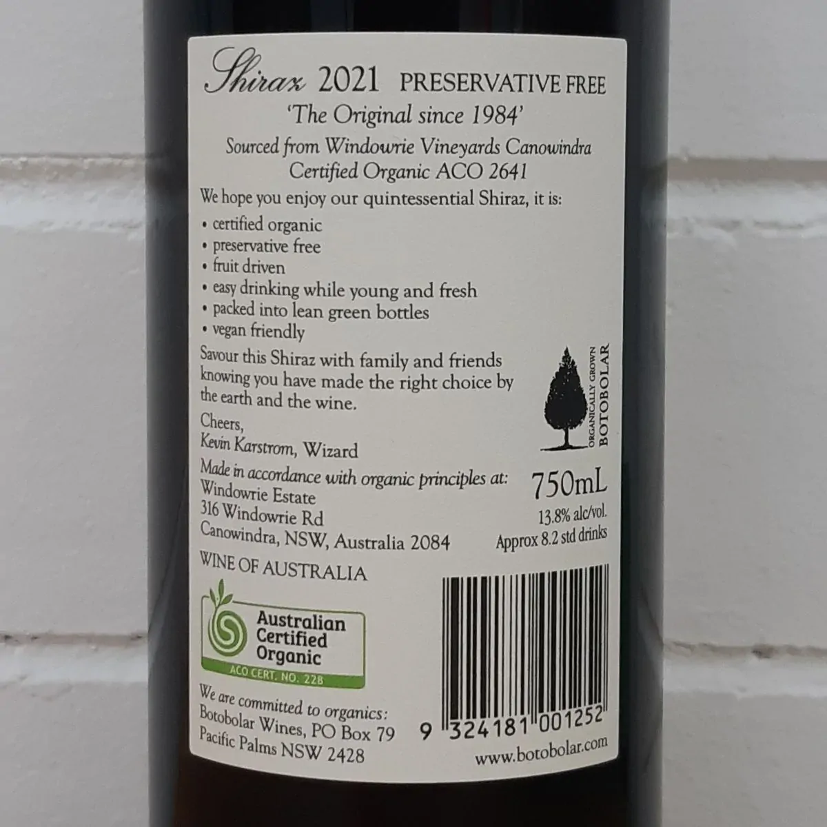 Tasting Notes for Botobolar Organic Preservative Free Shiraz 2025 from the Winery