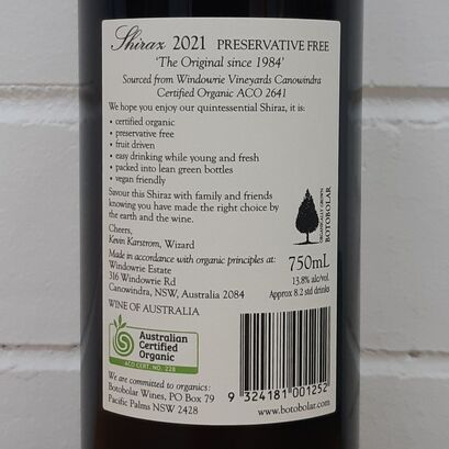 Tasting Notes for Botobolar Organic Preservative Free Shiraz 2024 from the Winery