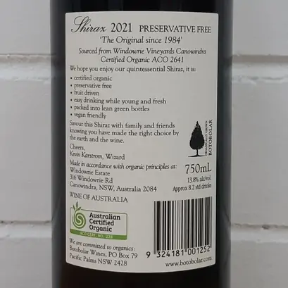 Botobolar Organic Preservative Free Shiraz 2024