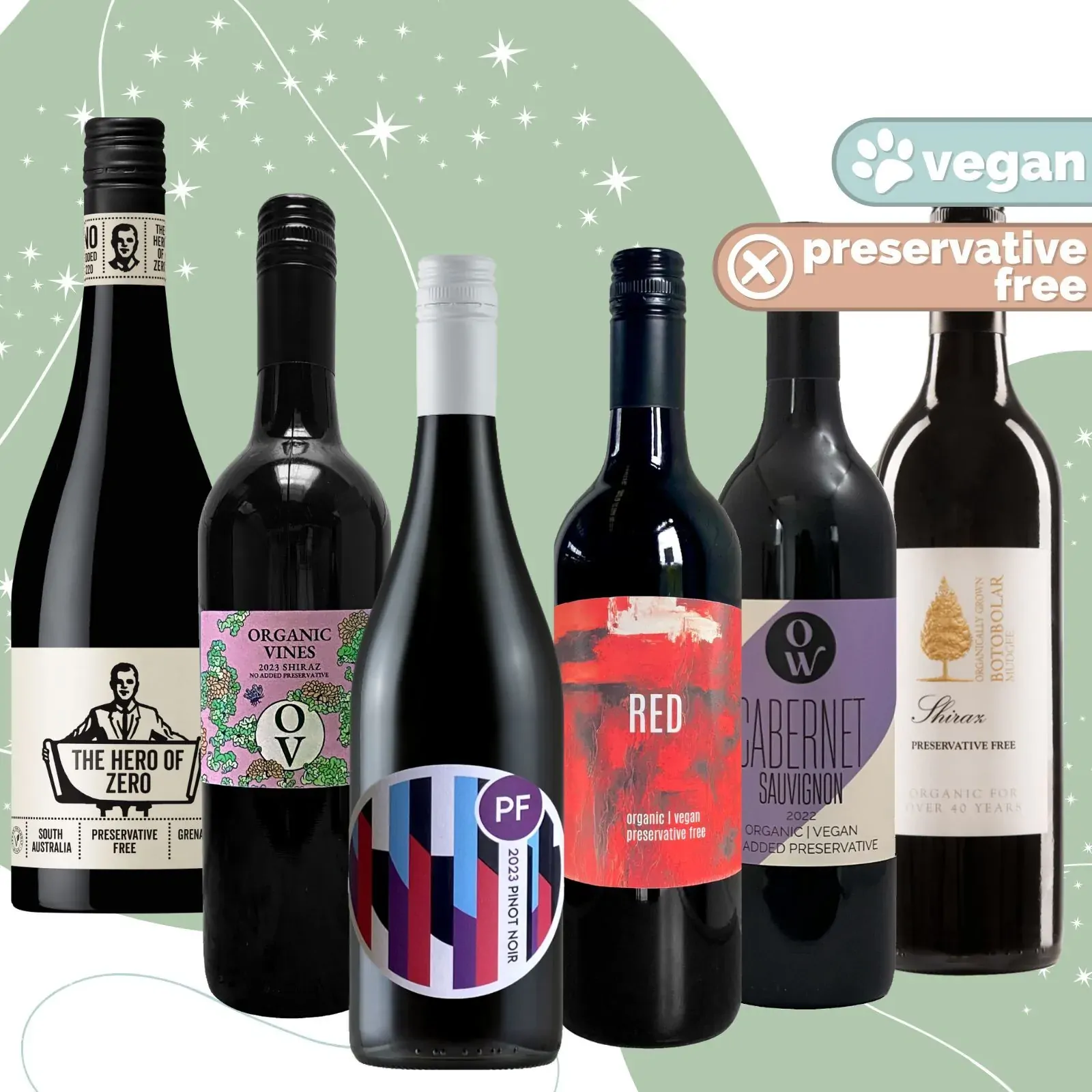 Enjoy this pack of great value and flavourful preservative free reds. Some of the biggest sellers in our range, great way to find your own favourite.