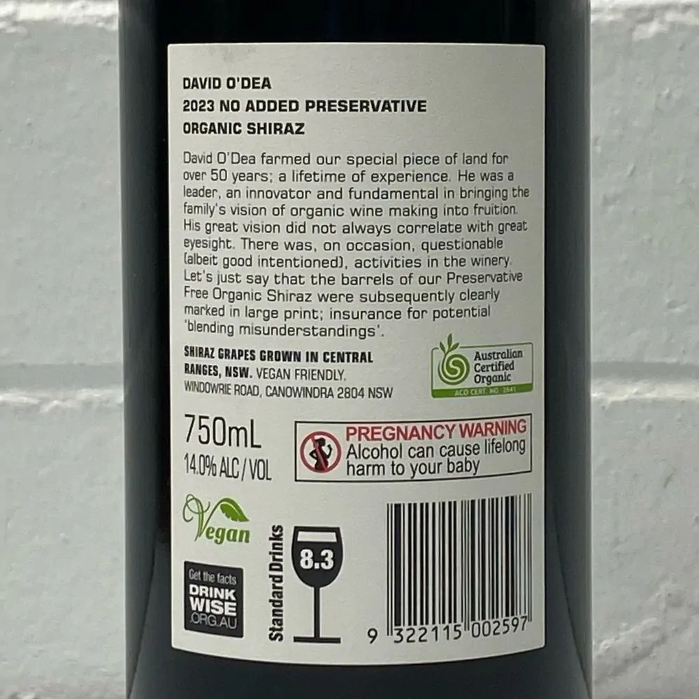 Macaw Creek Organic Preservative Free Shiraz 2023