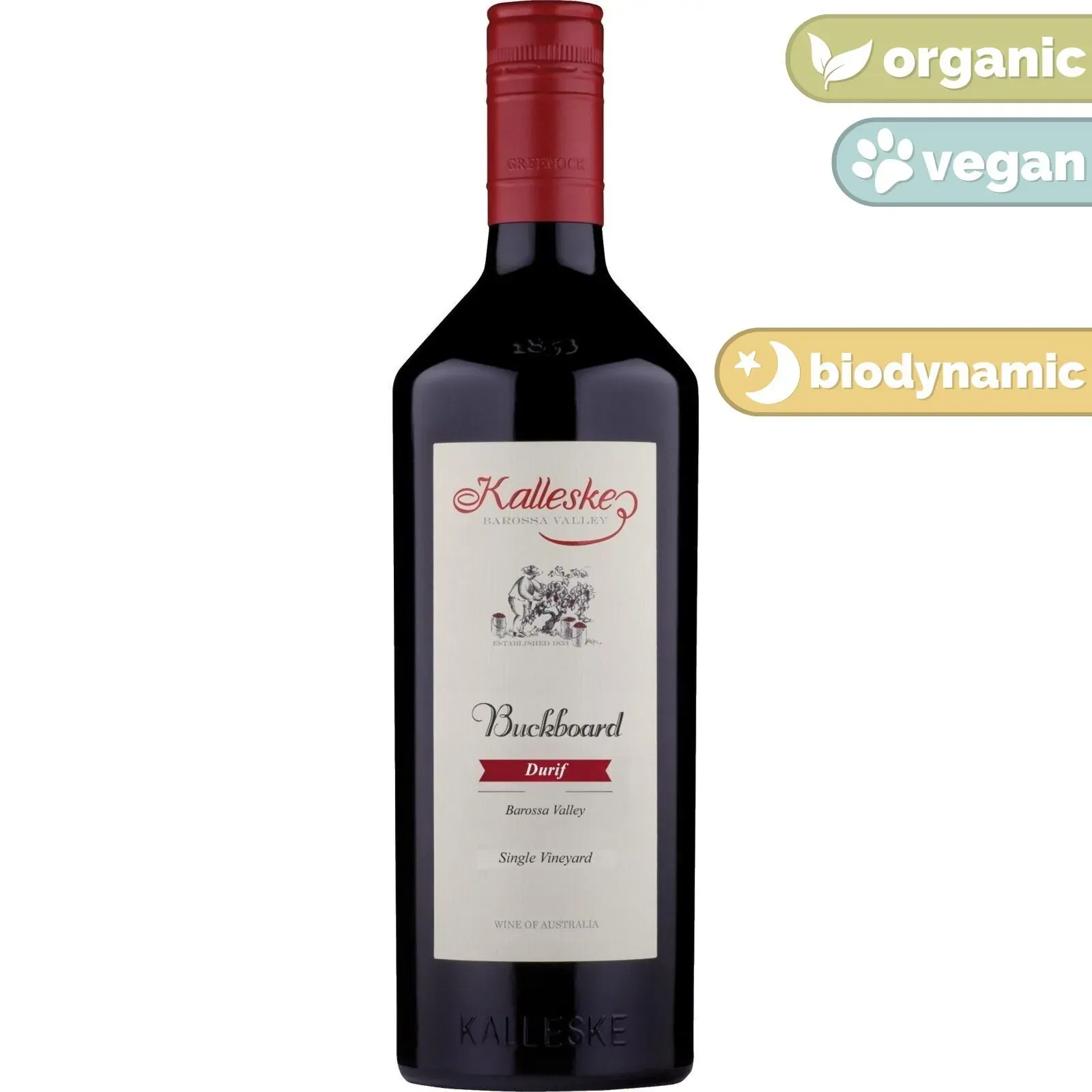Buckboard Durif is a single vineyard wine that’s been grown, vintaged and matured on the Kalleske property. Vigilant grape growing, traditional winemaking and maturation in new and seasoned American oak hogsheads has resulted in a powerful, full-bodied wine of great flavour and intensity.