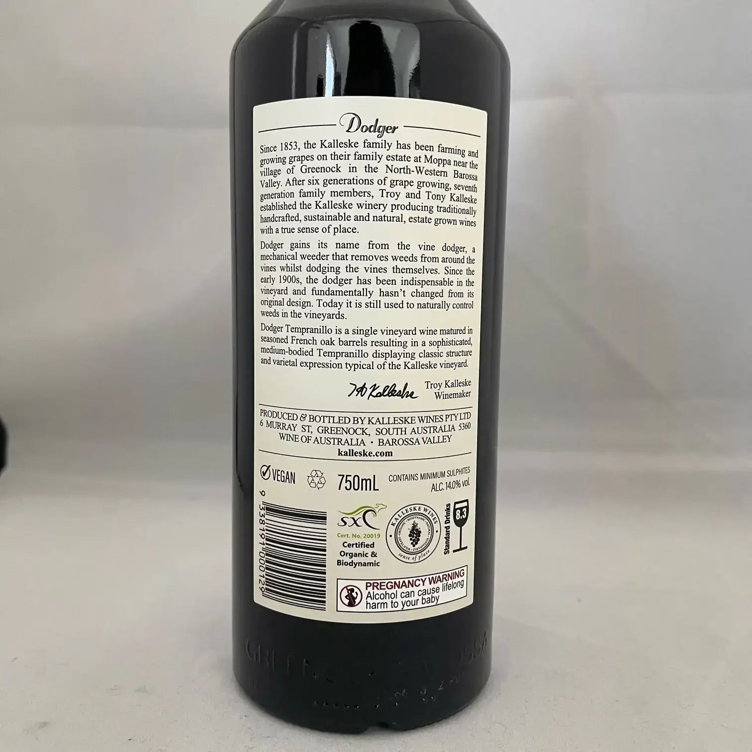 Certified Organic & Biodynamic | Vegan Friendly | Alcohol: 13.5% | Contains 8.0 Standard Drinks | Contains Sulphites