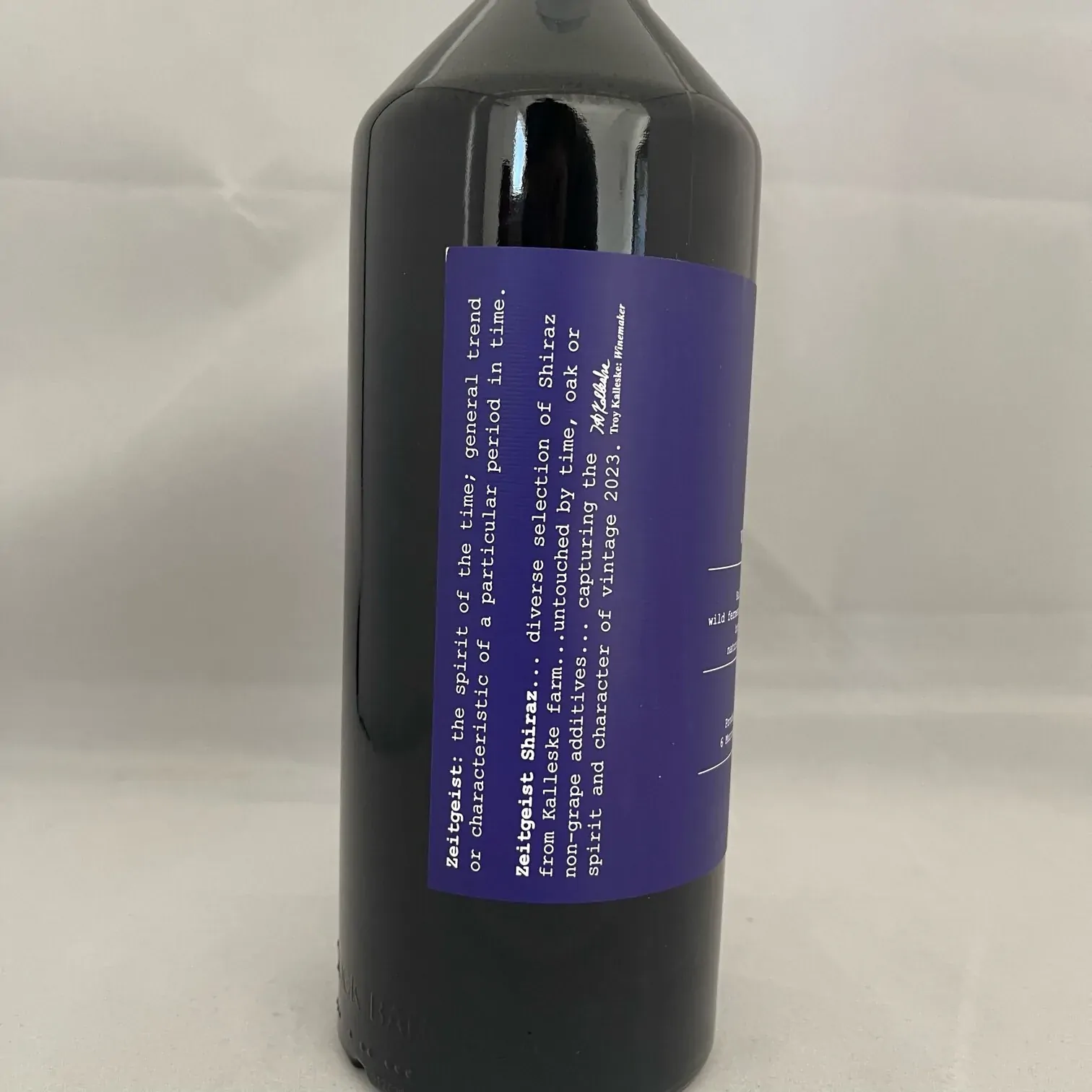Zeitgeist Shiraz… Diverse selection of Shiraz from Kalleske farm… untouched by time, oak or non-grape additives… capturing the spirit and character of vintage 2024.