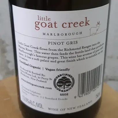 Tasting Notes for Little Goat Creek Pinot Gris from the Winery