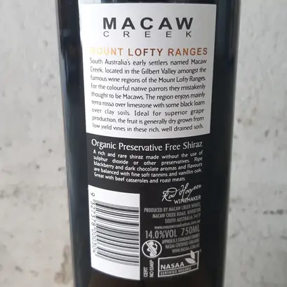 Macaw Creek Organic Preservative Free Shiraz 2021: Tasting Notes