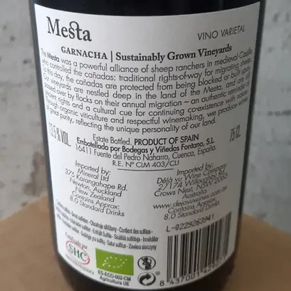 Mesta (Fontana Bodegas & Viñedos) works with organically farmed, high-altitude vineyards in central Spain. The wines are defined by freshness, elegance and varietal purity—this Grenache is a juicy, unoaked example of that house style.