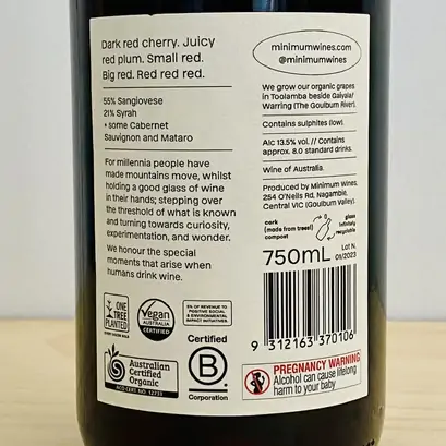 Tasting notes for Minimum Red Sangiovese Syrah 2022 from the Winery