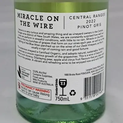 Tasting Notes for Miracle On The Wire Organic Pinot Gris 2022 from the Winery