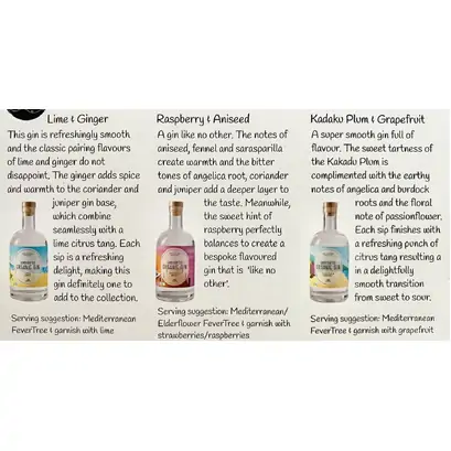 Our Sample Gin Taster Pack is perfect if you can't decide which flavour you like more, or for sharing with a friend or even as a gift for someone. Its the best of 'three worlds'.