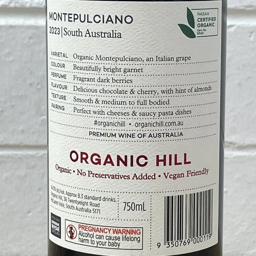 Tasting Notes for Organic Hill Preservative Free Montepulciano from the Winery