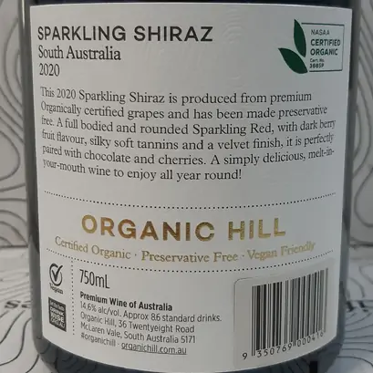 Tasting Notes for Organic Hill Sparkling Shiraz 2020 from the Winery