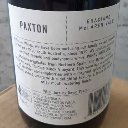 Graciano is a Spanish varietal grown primarily in the Rioja region. After some research David Paxton decided to graft one row of Graciano onto some old Chardonnay vines at Thomas Block to see what the result would be. When you try this wine, we think you will agree that the variety is well suited to the conditions of McLaren Vale.