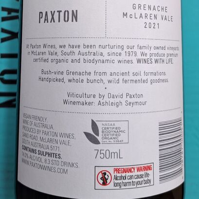 Tasting Notes for Paxton Grenache 2021 from the Winery