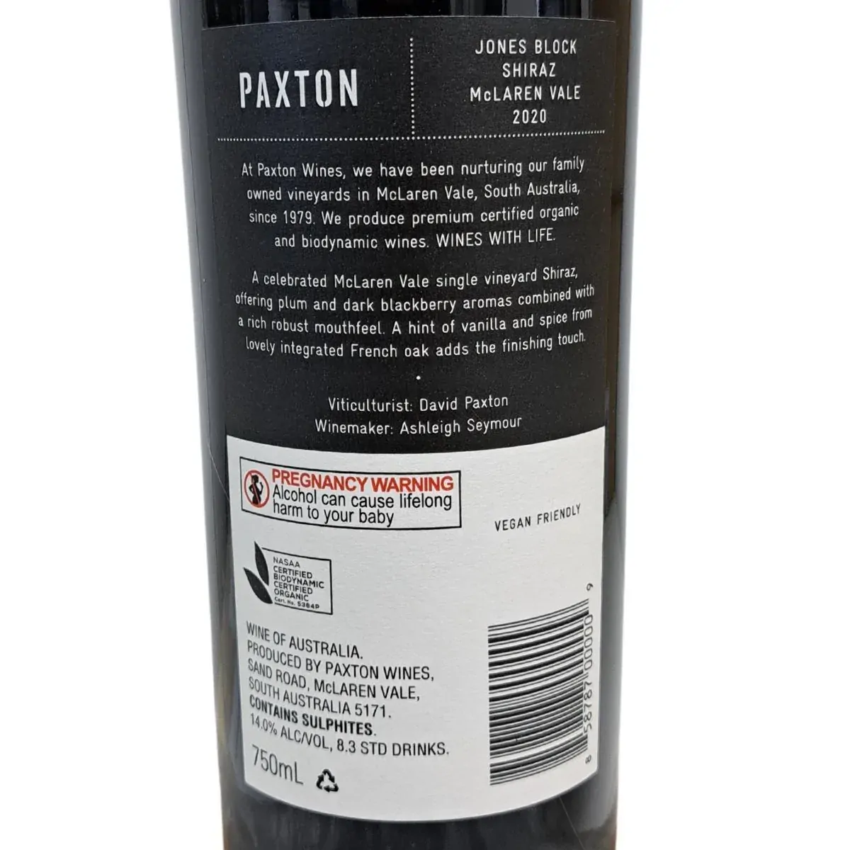 This is McLaren Vale Shiraz at its finest. From the acclaimed ‘Jones Block’, this wine is well regarded for its generous, yet elegant style. A small parcel was selected from our century old vines for complex fruit flavours and seamless structure. Grapes are hand pruned; wine is aged in fine grained French and American oak. As always, no corners cut. A rich, savoury and spicy blend, this wine has a fleshy middle palate and great length. Enjoyed with food, a glass or three of Paxton is certain to spice up the evening.
