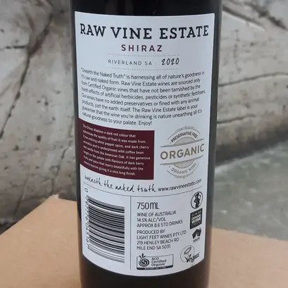 Tasting Notes for Raw Vine Estate Organic Preservative Free Shiraz from the Winery