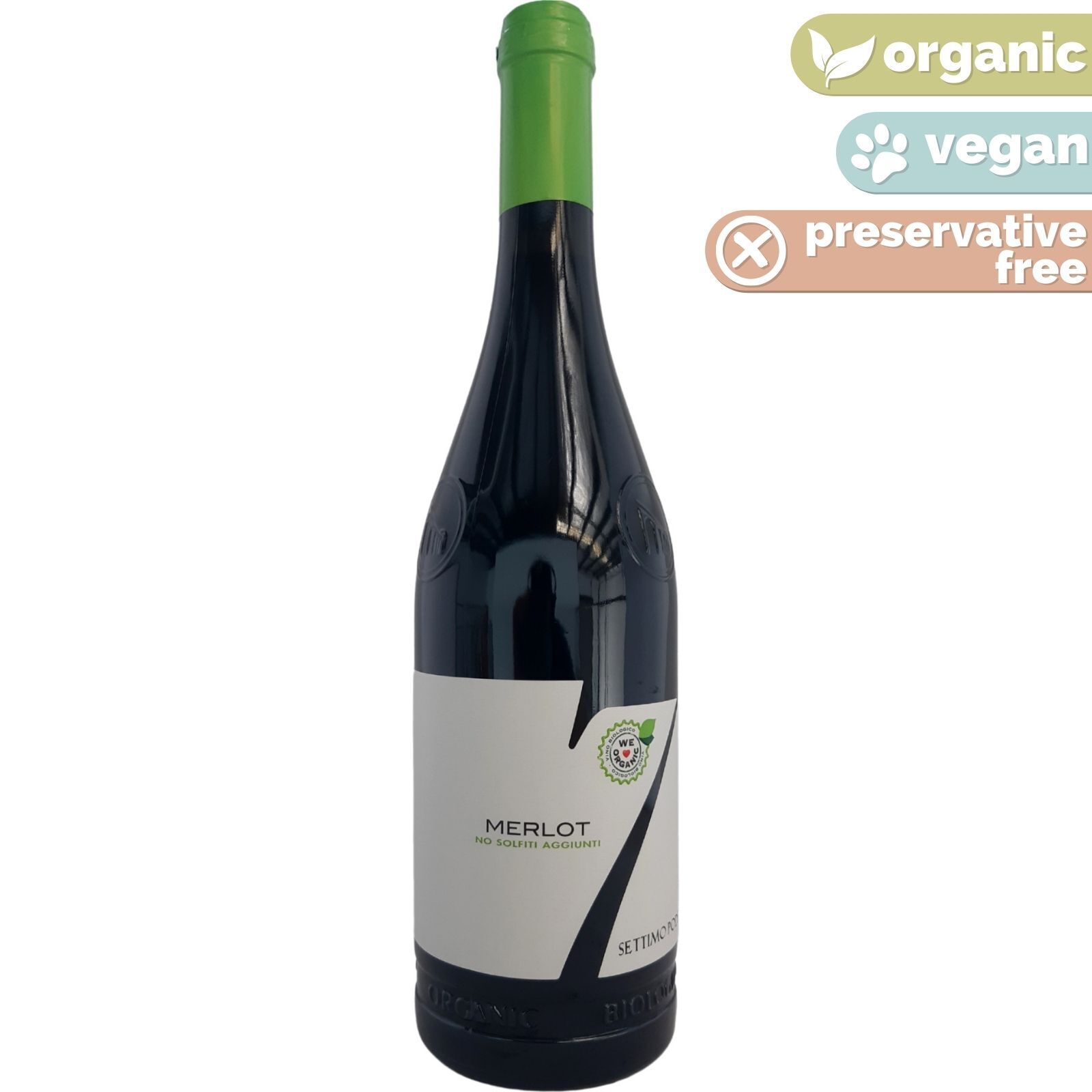 Classic red vinification without the addition of sulfur dioxide. The healthiest Merlot grapes are selected. Fermentation is activated through selected low sulfur dioxide-producing yeasts and takes place with the skins at a temperature of 25°C for a week. Subsequently the wine is filtered in a sterile way and stored in tanks at a controlled temperature to avoid possible oxidation.