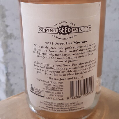 Spring Seed Sweet Pea Moscato 2019 - Tasting Notes from the Winery