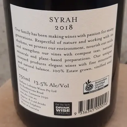 Tasting notes from the winery for Stefano Lubiana Syrah 2019