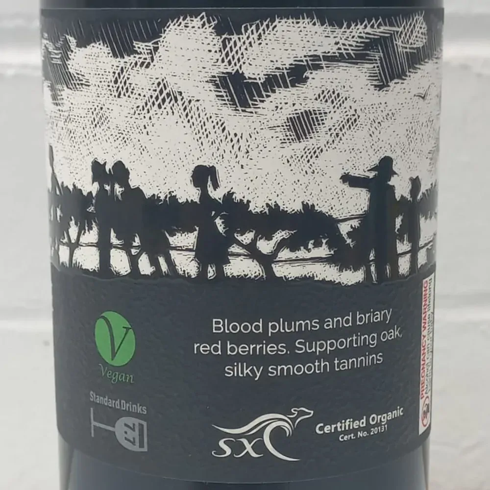 Plum and mulberry fruit with cocoa and a gentle savoury herb lift. It’s medium-bodied, dry, and finishes smooth with soft, silky tannins.