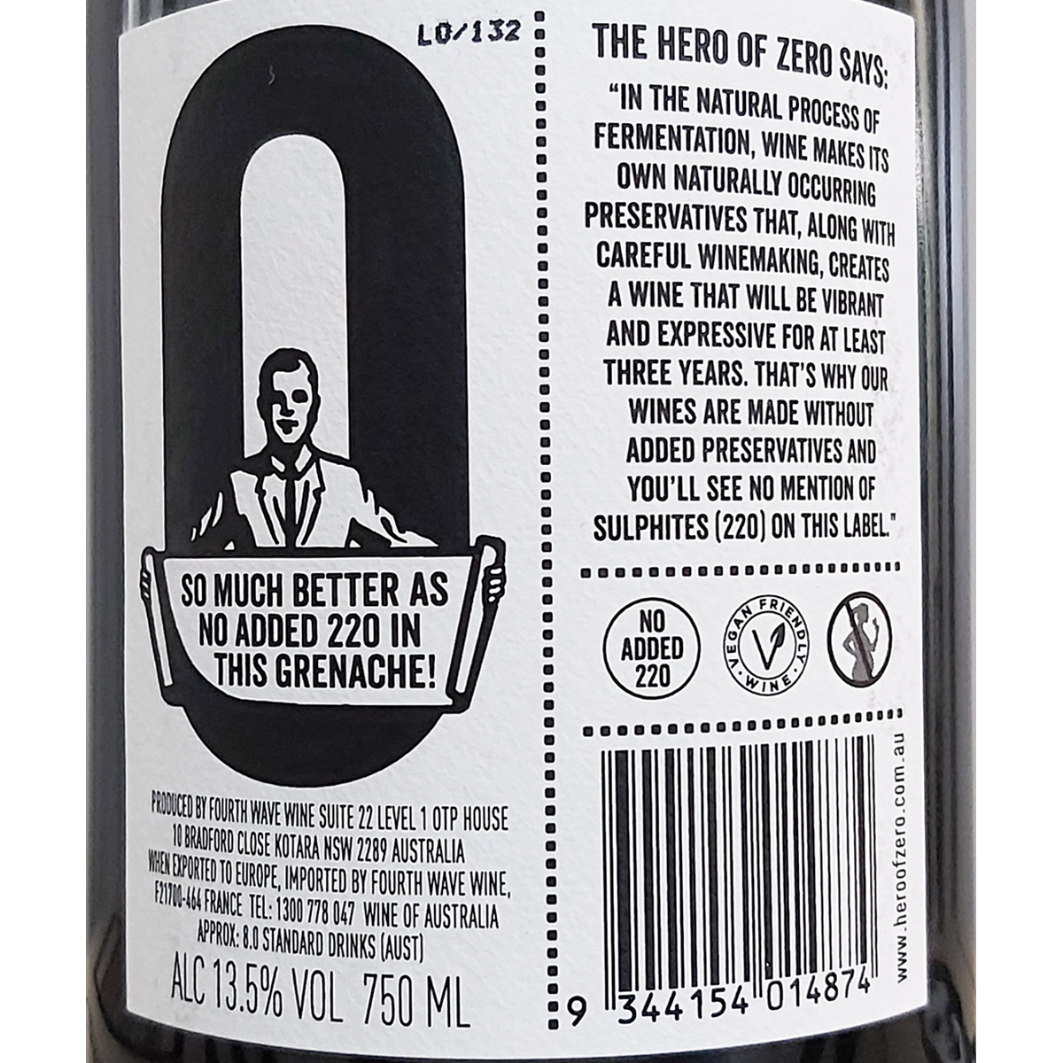 Summary: The Hero wines are hand-crafted from the best quality fruit sourced from premium vineyards across South Australia, including McLaren Vale and the Barossa. With meticulous handling in the vineyard and winery, the pristine fruit will have less exposure to anything harmful that may normally require the addition of preservatives. Our wines are crafted to be brightly coloured, exotically fragrant, full-flavoured and critically, they sing without the addition of preservatives. Perfectly suited to many cuisines, these wines are also crafted to ensure they are suitable for Vegans.