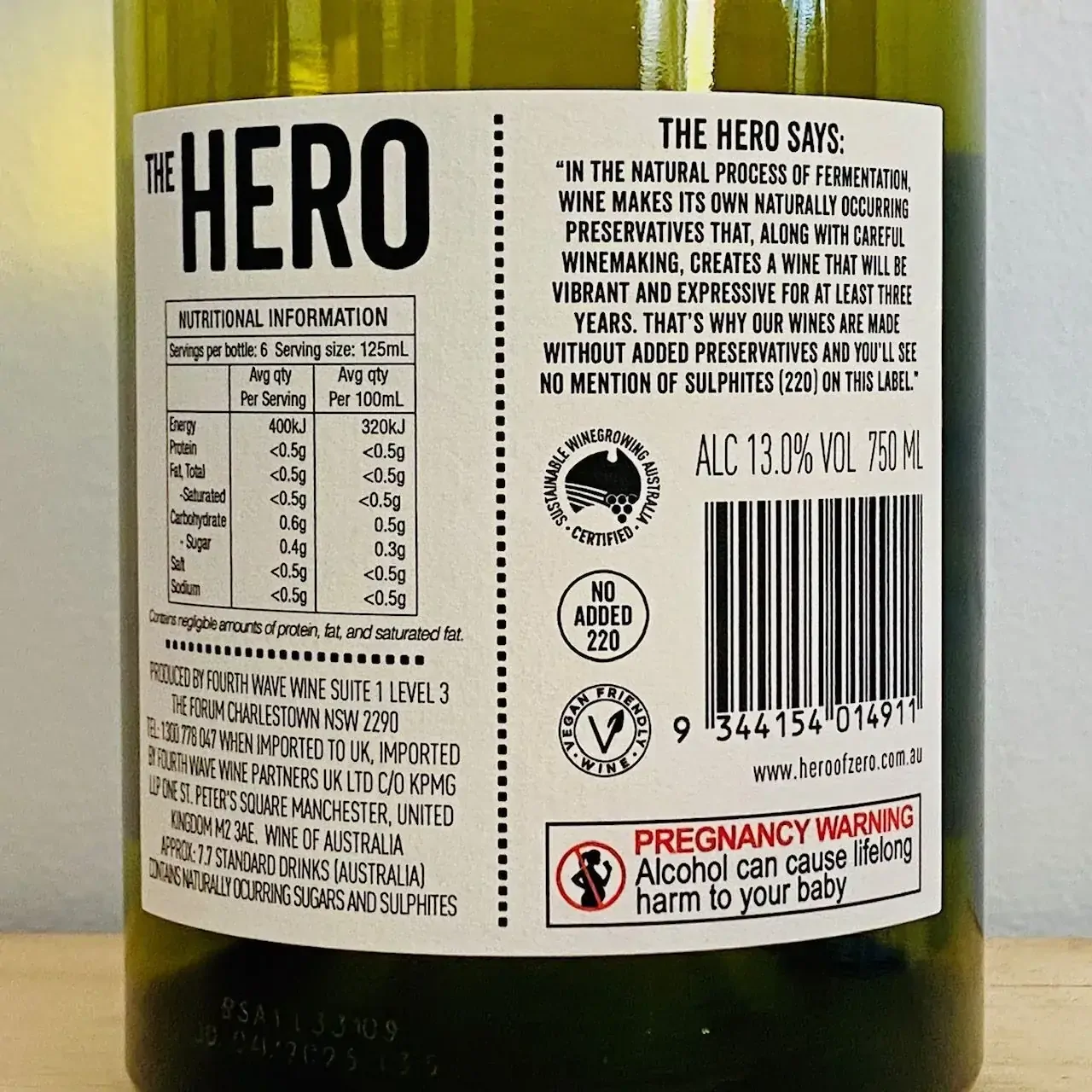 The Hero Preservative Free focuses on preservative-free, vegan-suitable wines made from carefully handled South Australian fruit. With quick processing and cool ferments, the range is designed for bright aromatics, clean flavours and easy drinkability—without added preservatives.