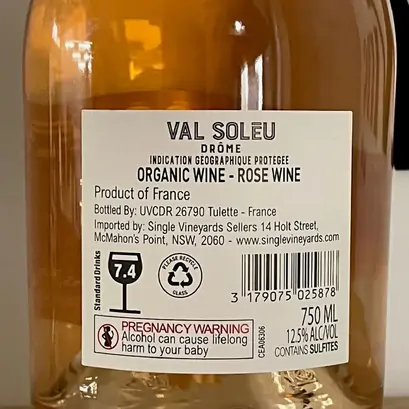 Val Soleu Provence IGP Drome Organic Rose 2022