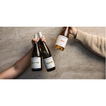 Hand-picked. Varieties individually pressed to tank and settled. Clear juice racked to stainless steel for cool fermentation. Aged on lees in stainless steel for 2 months before final maturation in old French oak barrels for a total of 5 months before blending. Bottled September 2024. Certified Organic and Biodynamic.