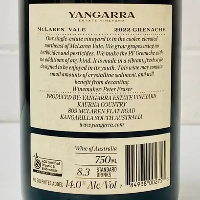 Tasting Notes for Yangarra Preservative Free Grenache 2022 from the Winery