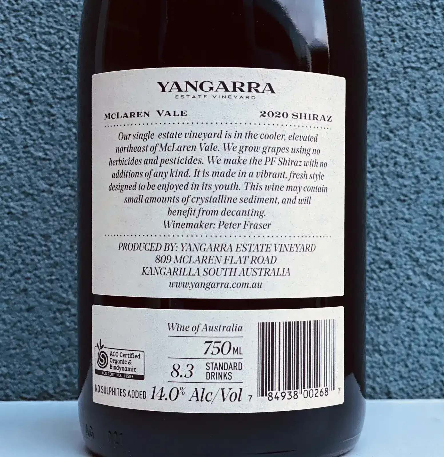 From Yangarra’s certified organic and biodynamic estate in Blewitt Springs (McLaren Vale), on ancient North Maslin Sands. The elevated site helps Shiraz hold vibrancy and lift, which is exactly what you want for a preservative-free style: bright fruit, clean lines and good natural balance.